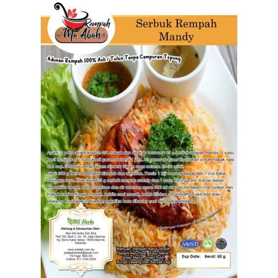 Serbuk Rempah Nasi Arab Mandy Nasi Khao Mok Thailand Nasi Khabsah Nasi Daging Bukhari Bubur Assyura Keluaran Muslim Shopee Malaysia