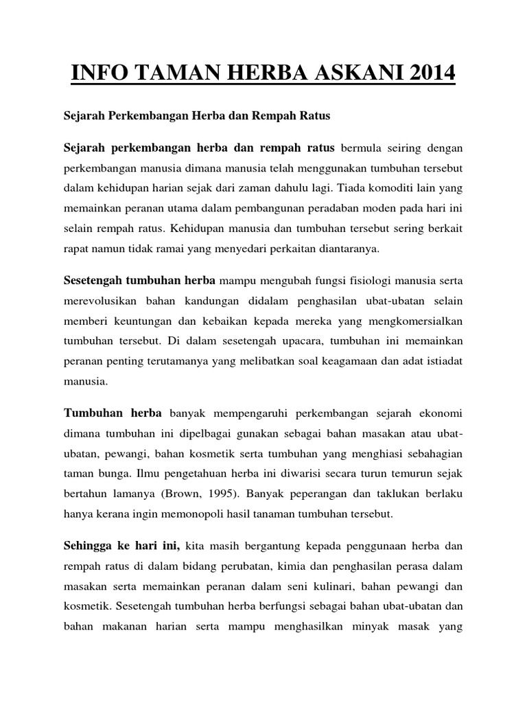 Sejarah Perkembangan Herba Dan Rempah Ratus Pdf